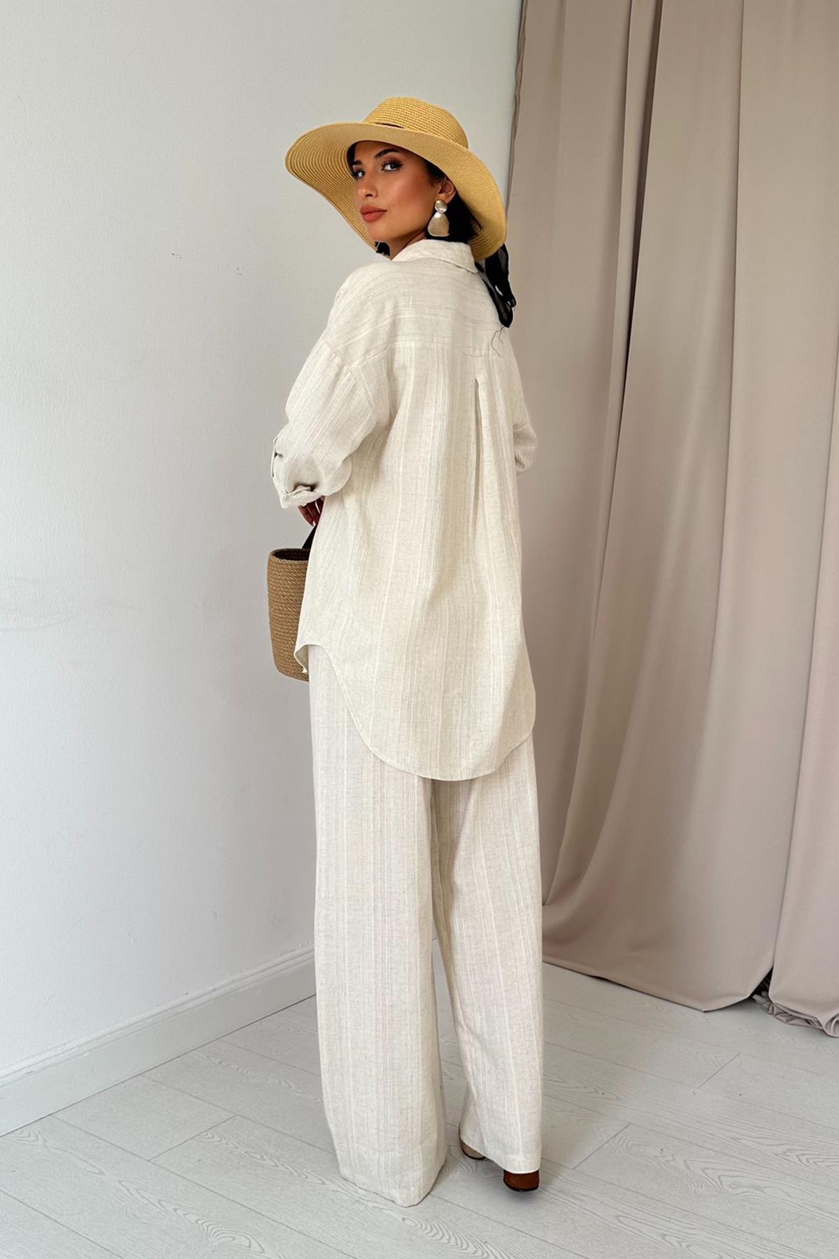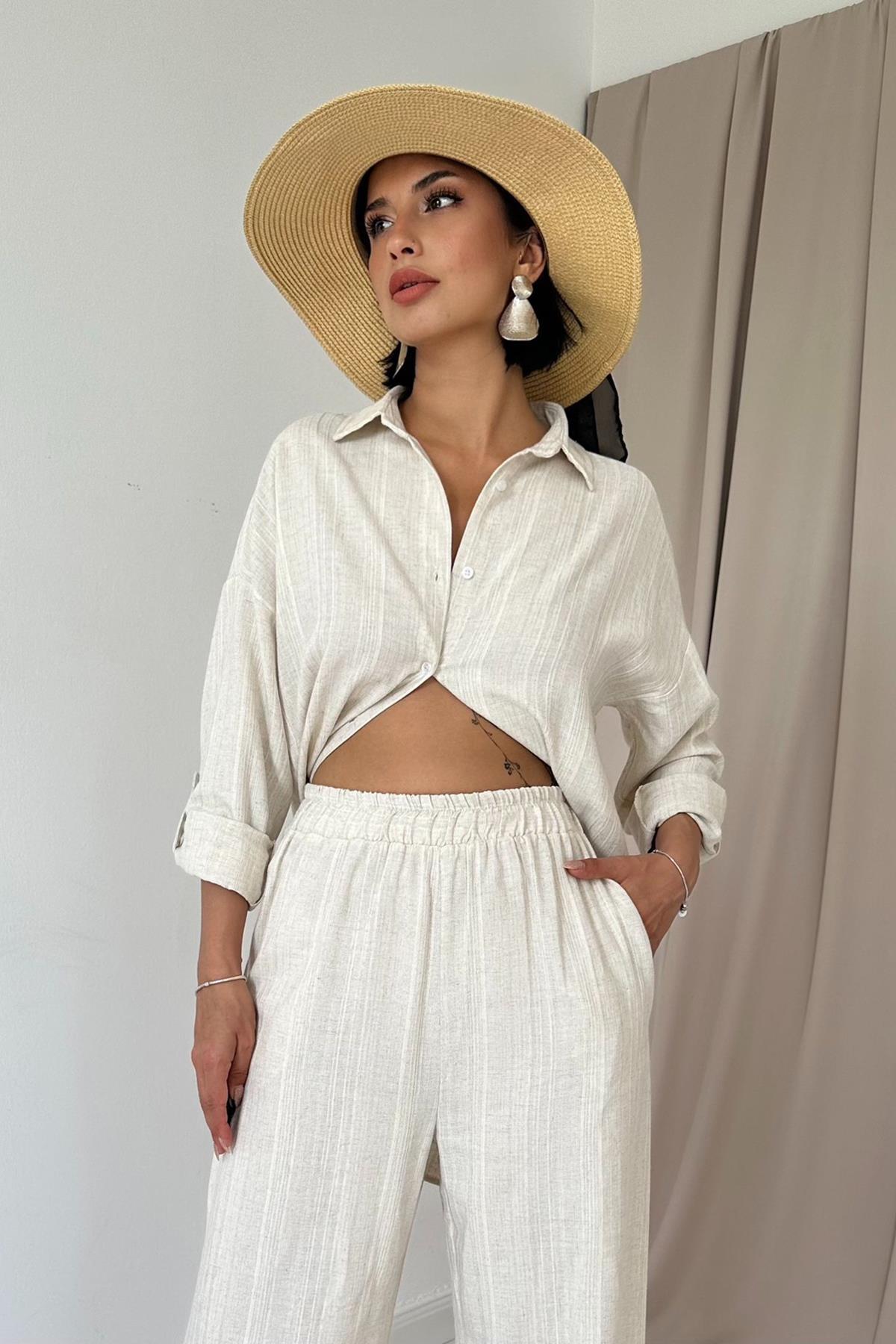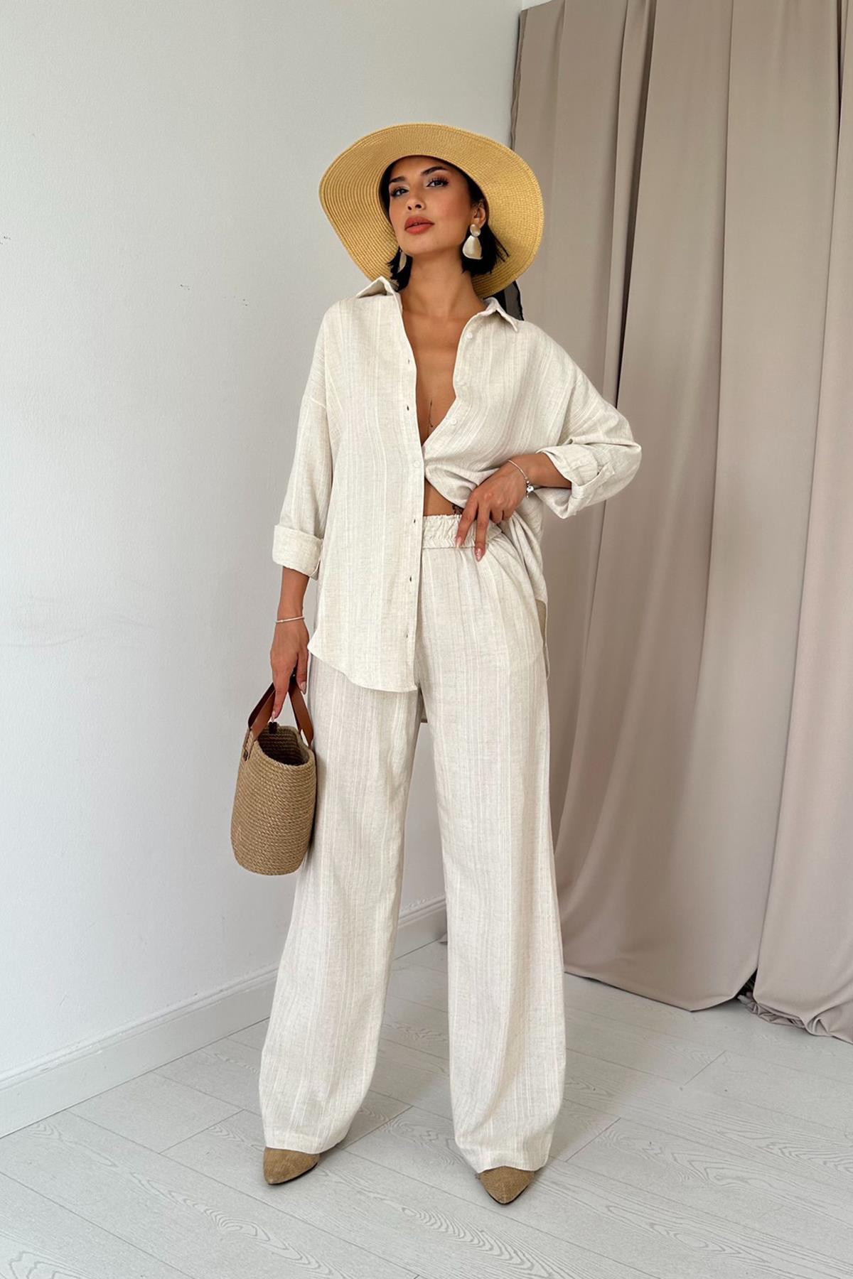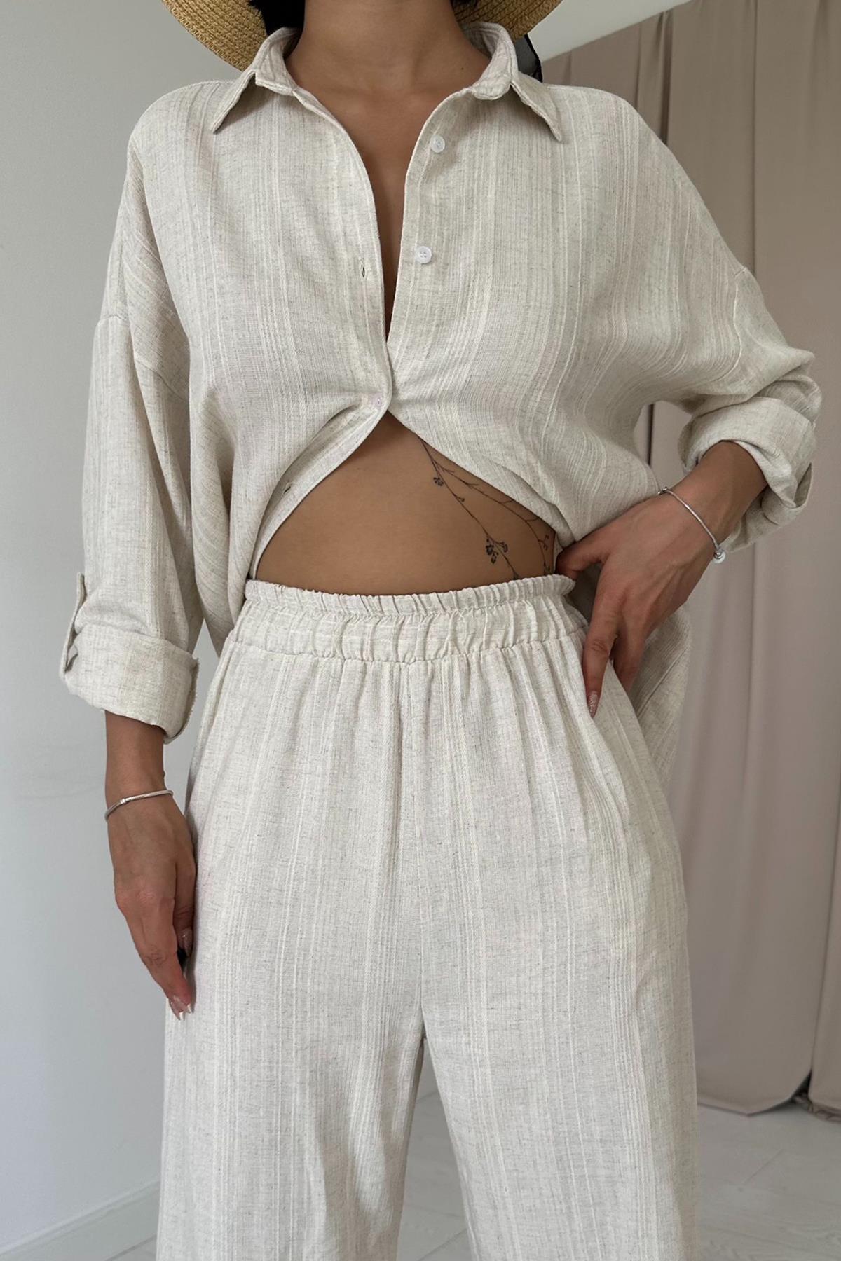 • Zweiteilig: Oversize-Hemd + locker fallende Hose
